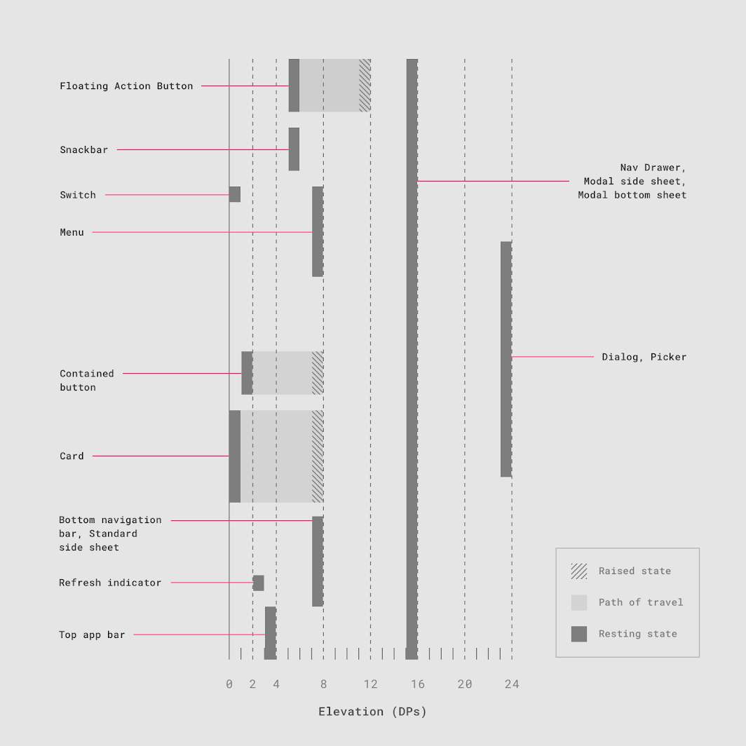 In Kolibri products we try to use the conventional elevation dp values shown above as